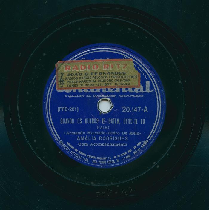 Disco de goma-laca, de gravação elétrica, composto pelos títulos: Quando os outros te batem, beijo-te eu - fado [de] Armando Machado, Pedro de Melo [e interpretado por] Amália Rodrigues, com acompanhamento; Fria claridade - fado [de] José Marques Amaral, Pedro Homem de Melo [e interpretado por] Amália Rodrigues, com acompanhamento.